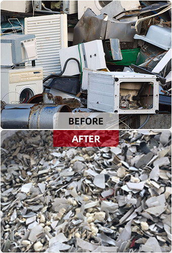 Utiliza martillos para descomponer eficientemente los electrodomésticos desechados en formas esféricas mientras separa las impurezas con un bajo consumo de energía.